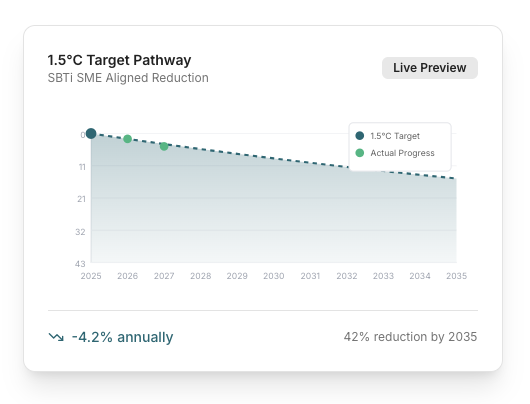 Our proprietary engine calculates your Scope 1, 2 and 3 emissions, then generates a science-backed net zero roadmap aligned with SBTi standards.